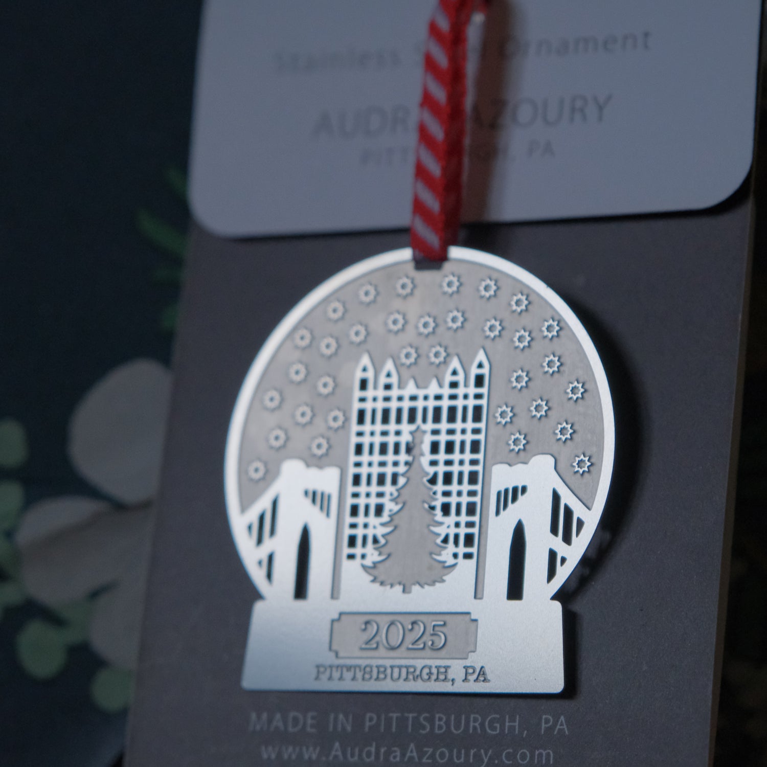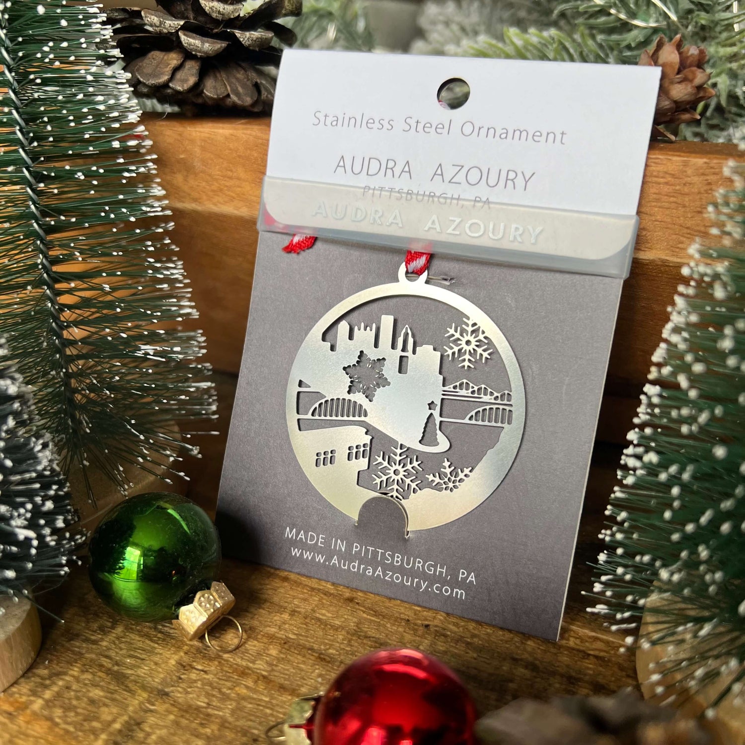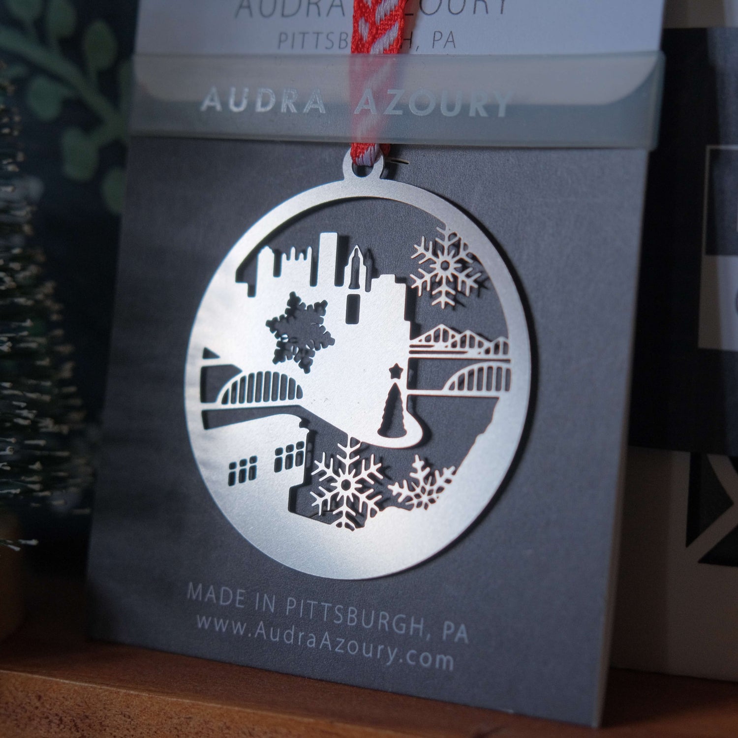 Pittsburgh Ornaments. Pittsburgh Christmas Ornaments. Pittsburgh Holiday Ornaments. Designed by local artist Audra...