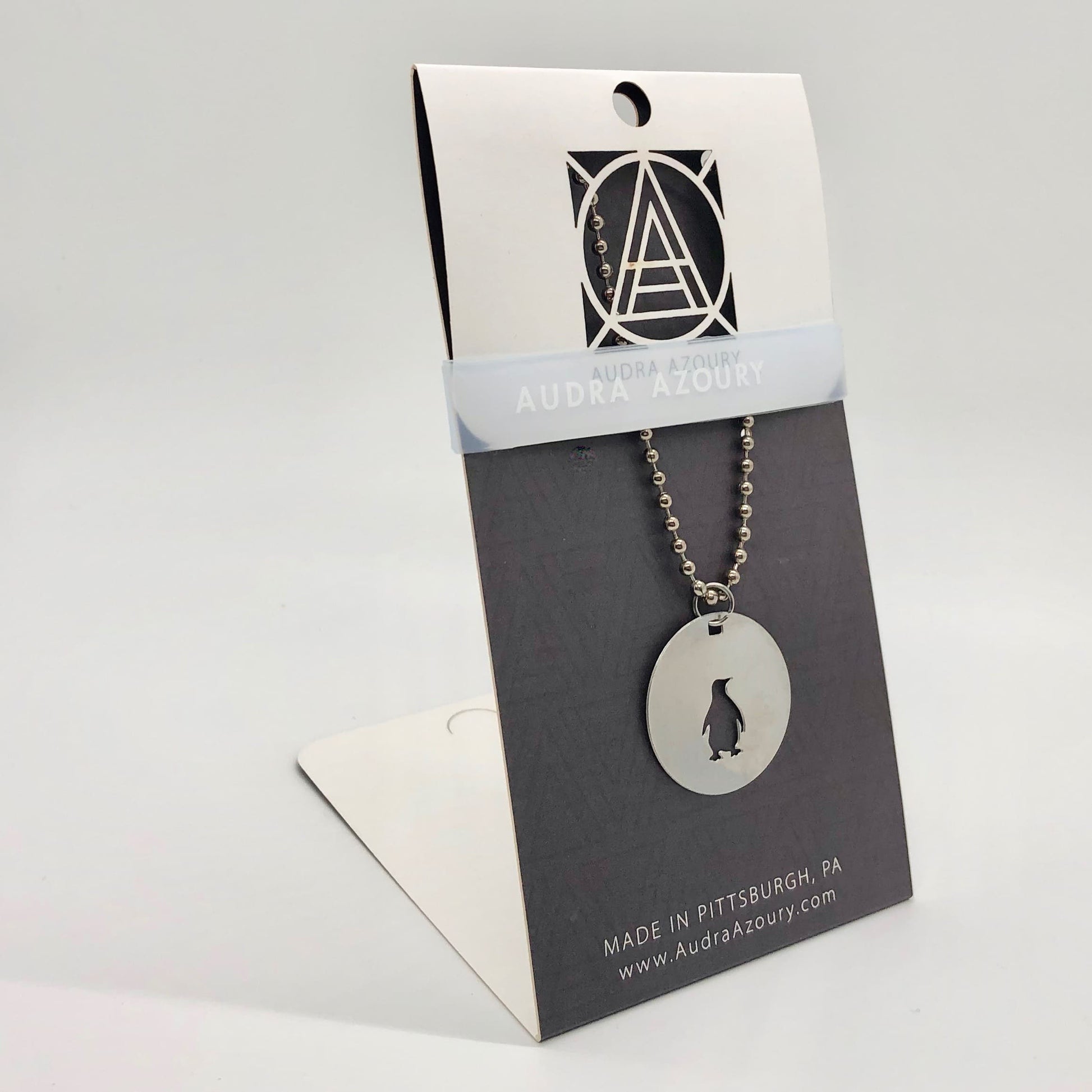Pittsburgh Steel Town Necklaces are inspired by Pittsburgh sports, bridges and landmarks. Lightweight stainless steel charm will not rust or break. Ballchain is 20" in length and can be easily snipped to a shorter length. Designed by local artist Audra Azoury.