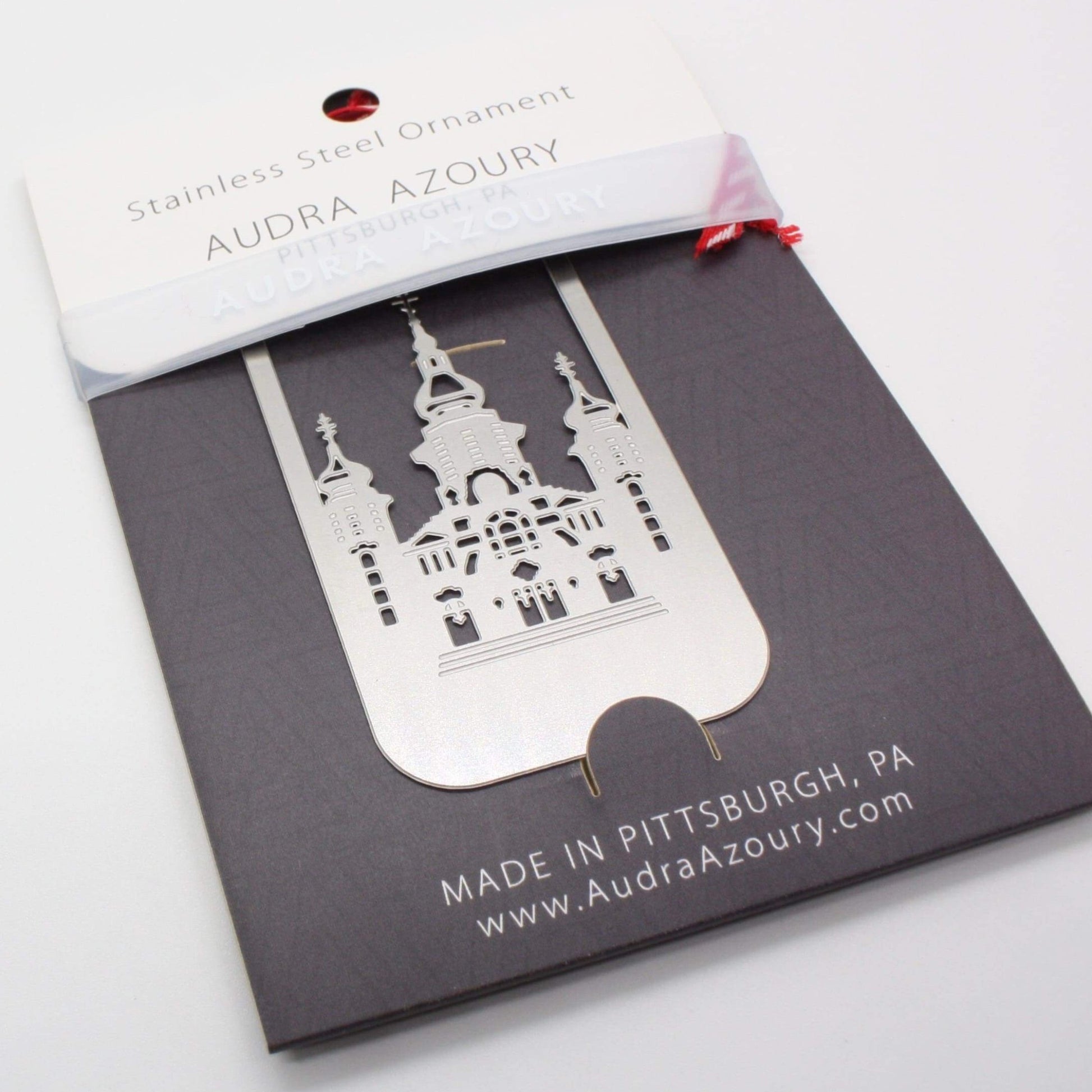Saint Peter & Saint Paul Church highlights the borough of Carnegie, PA located just outside of Pittsburgh. Intricately cut lightweight stainless steel won't weigh your tree branches down, tarnish or break. Good as bookmarks and mini-sun catchers for year around decorating.