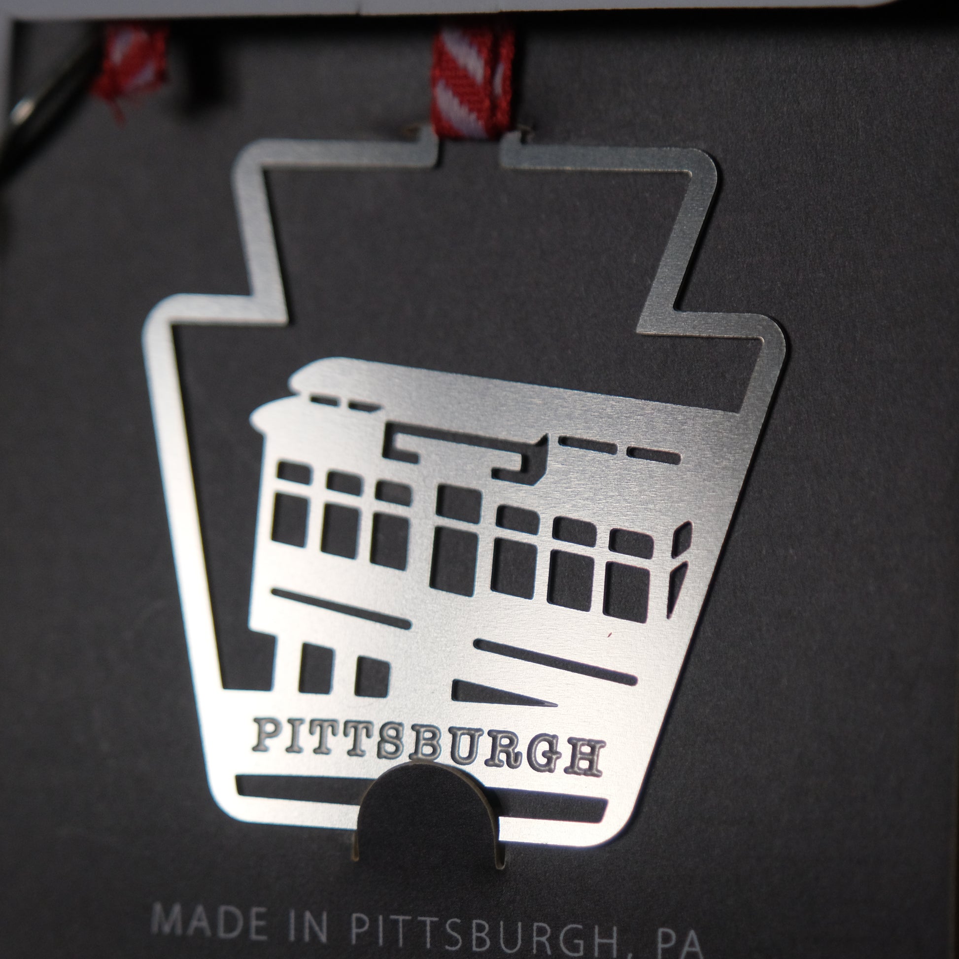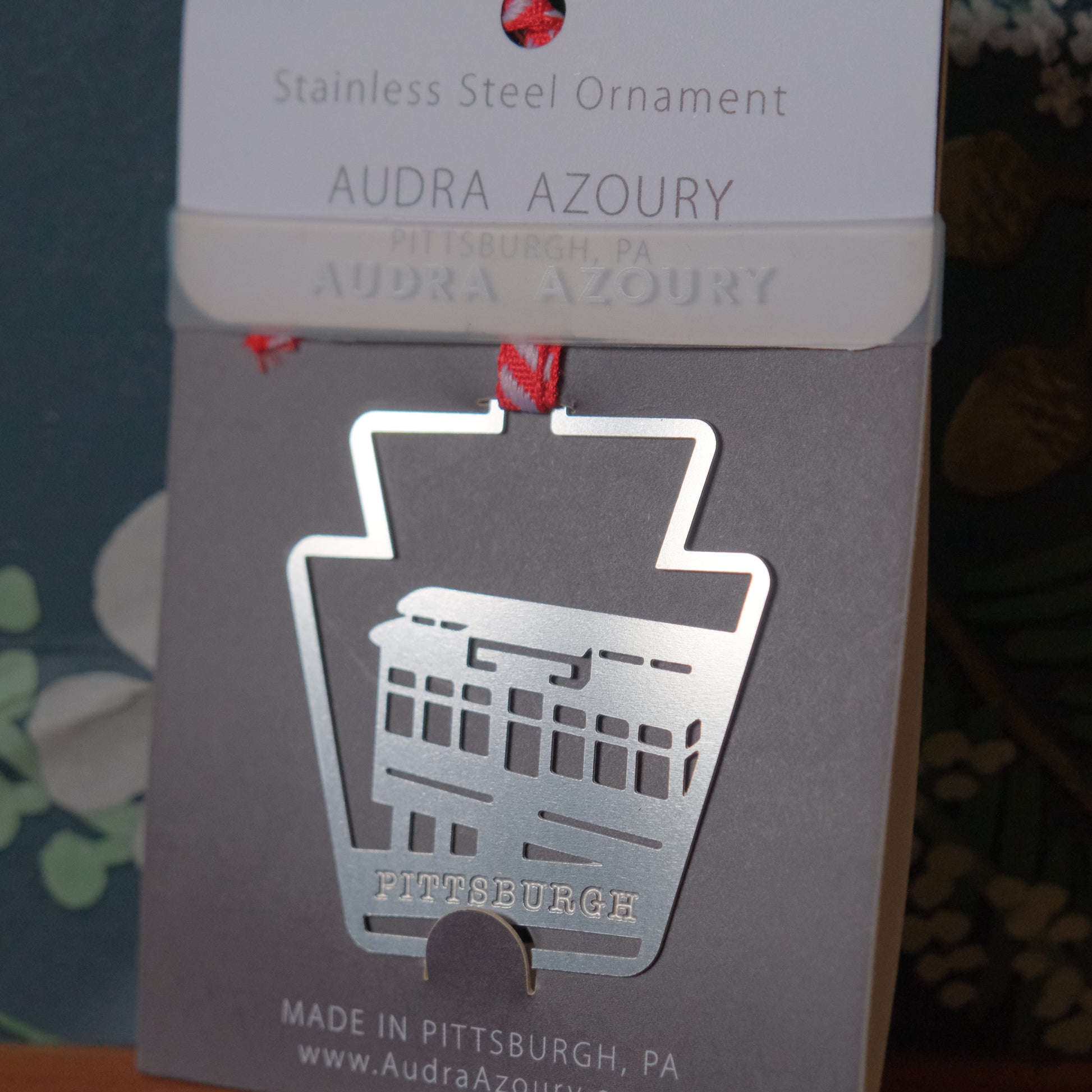 Pittsburgh Incline. Intricately cut lightweight stainless steel won't weigh your tree branches down, tarnish or break. Good as bookmarks and mini-sun catchers for year around decorating. Inspired by Pittsburgh neighborhoods and landmarks. Designed by local artists Audra Azoury.