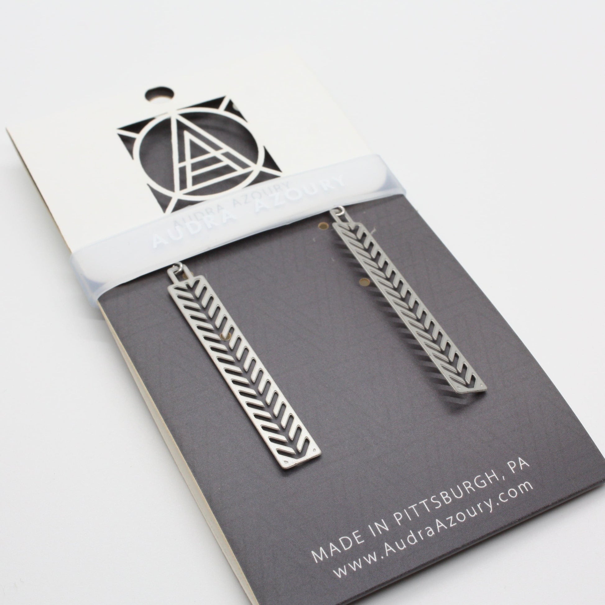Wheat inspired pattern. Earrings. measure 1/2" x 2". Lightweight staines steel will not tarnish. Ear wires are surgical steel.